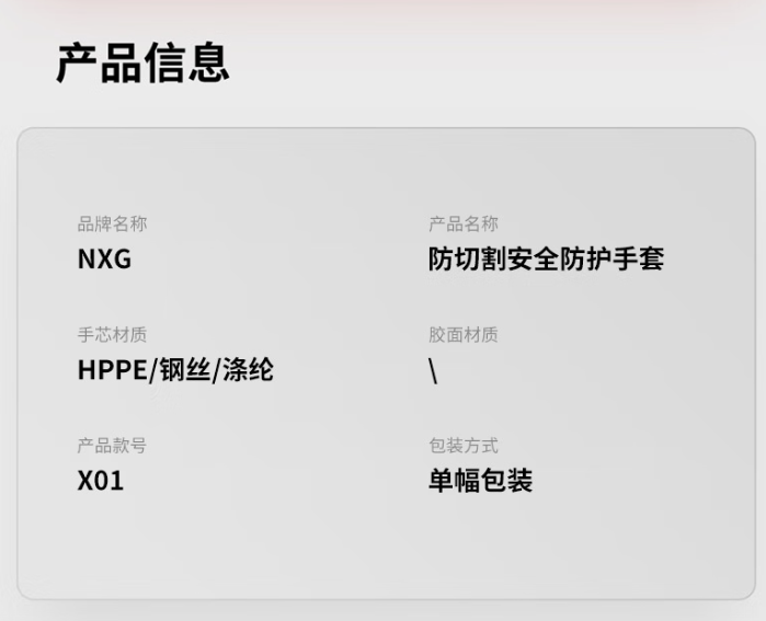 NXG 防割手套 劳保防护 1双 X01