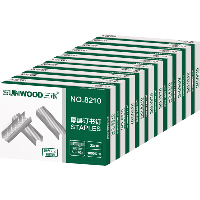 三木 23/10厚层订书钉 1000枚/盒 10盒装 8210