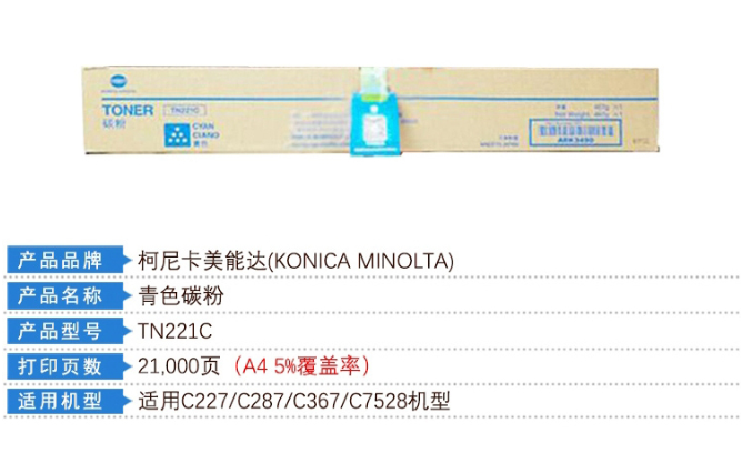 柯尼卡美能达 原装青色碳粉 TN221C