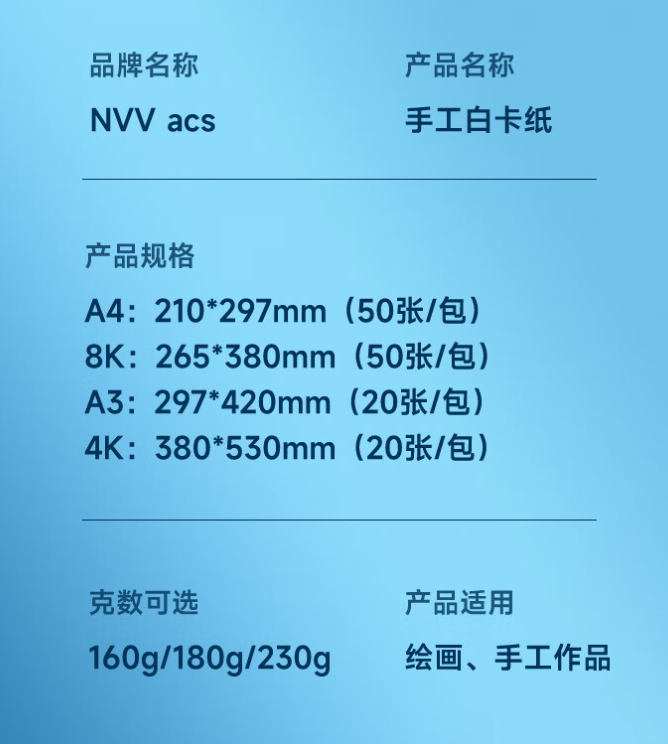 NVV 8K荷兰白色卡纸 160g 50张/包 Z-B8K50-160